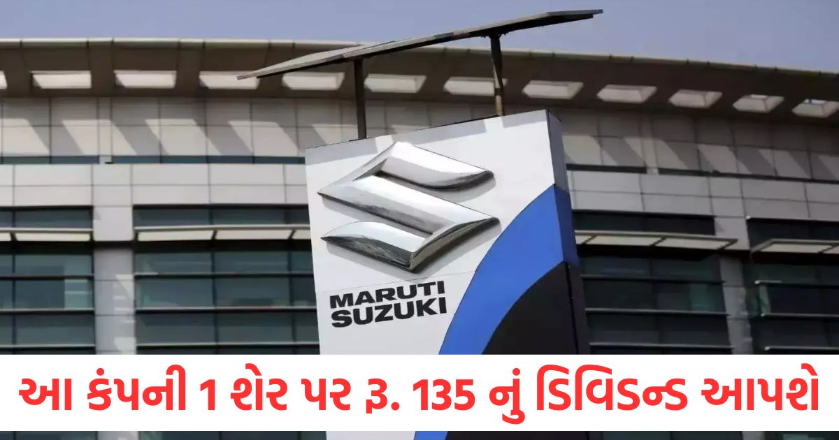 અગ્રણી ઓટો કંપની મારુતિ સુઝુકી ઈન્ડિયા લિમિટેડે ડિવિડન્ડની જાહેરાત કરી છે. આ વખતે કંપનીએ પ્રતિ શેર ૧૩૫ રૂપિયા ડિવિડન્ડ આપવાનો નિર્ણય લીધો છે. કંપનીએ આ ડિવિડન્ડ માટે રેકોર્ડ ડેટ જાહેર કરી છે. તમને જણાવી દઈએ કે, મારુતિ સુઝુકી લાંબા સમયથી નિયમિત અંતરાલે રોકાણકારોને ડિવિડન્ડ આપી રહી છે.