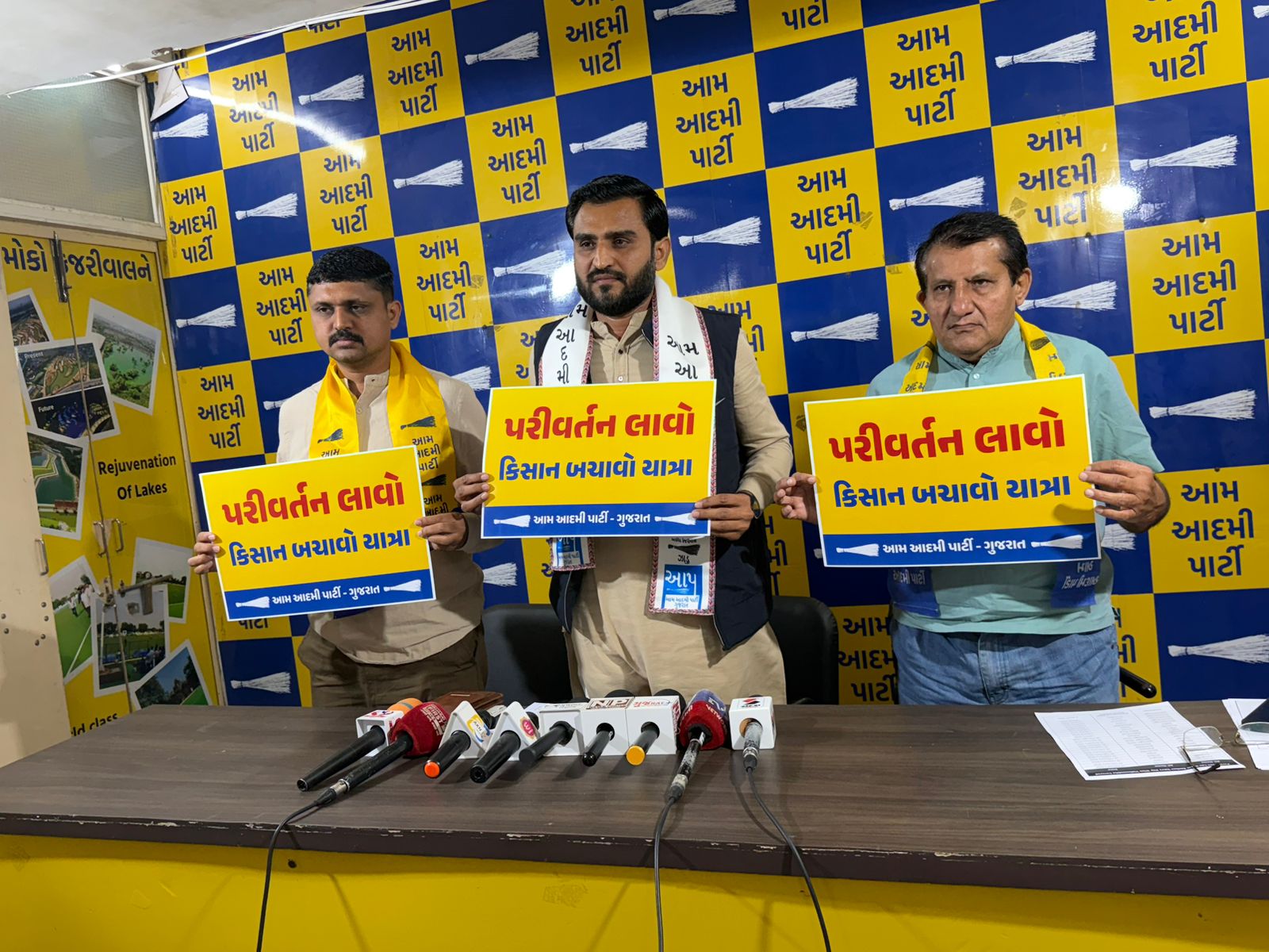 આ તકે આમ આદમી પાર્ટીના પ્રદેશ ફ્રન્ટલ મહામંત્રી સામત ગઢવીએ પત્રકાર પરિષદમાં જણાવ્યું હતું કે વરસાદી સીઝન દરમિયાન ખેડૂતોને યોગ્ય પ્રમાણમાં અને સારી ગુણવત્તાવાળું બિયારણ ઉપલબ્ધ થતું નથી. વાવણી બાદ ખાતર માટે ખેડૂતોને લાંબી લાઈનોમાં ઊભા રહેવું પડે છે અને ઘણી વખત ગુણવત્તાયુક્ત જંતુનાશક દવાઓ પણ મળતી નથી.છેલ્લા ત્રીસ વર્ષથી સત્તામાં રહેલી સરકાર છતાં ગુજરાતમાં સિંચાઈ માટે પૂરતું પાણી ઉપલબ્ધ નથી. ખેડૂતો મુશ્કેલ પરિસ્થિતિમાં મહેનત કરીને પાક ઉત્પાદન કરે છે, પરંતુ MSPના ભાવે સંપૂર્ણ ખરીદી થતી નથી. સરકાર દ્વારા ખરીદાયેલા પાકના પૈસા પણ સમયસર ખેડૂતોના ખાતામાં જમા થતા નથી.દુષ્કાળ અથવા અતિવર્ષા જેવી પરિસ્થિતિમાં ખેડૂતોને મળતી સહાય પૂરતી અને સમયસર મળતી નથી. આ પરિસ્થિતિને કારણે ગુજરાતના ખેડૂતો લાંબા સમયથી આર્થિક સંકટનો સામનો કરી રહ્યા છે. આમ આદમી પાર્ટી ગુજરાતના ખેડૂતોના હિત માટે સંઘર્ષ કરતી રહી છે અને ભવિષ્યમાં પણ સતત લડત આપશે. ખેડૂતોને ન્યાય અને સમૃદ્ધિ મળે તે માટે પાર્ટી દ્વારા યાત્રાનું આયોજન કરવામાં આવ્યું છે.