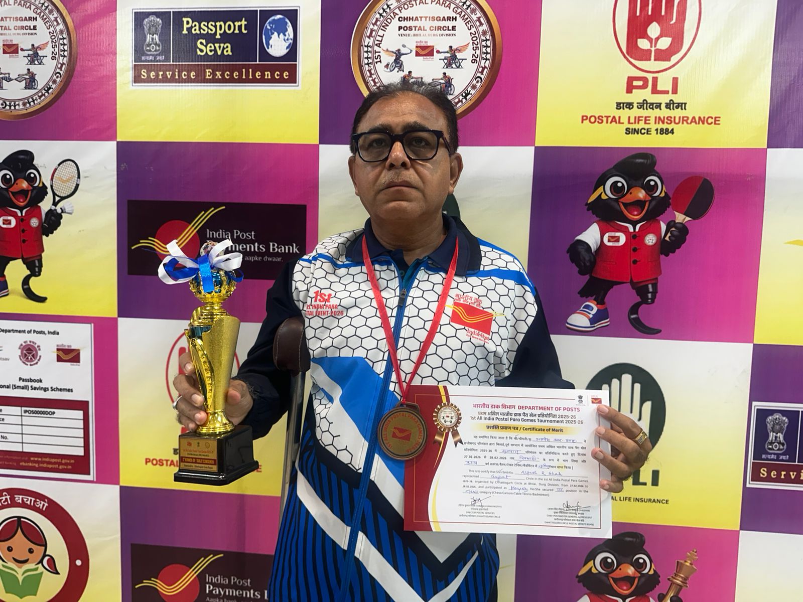 અમદાવાદના મુખ્યાલય ક્ષેત્રના પોસ્ટમાસ્ટર જનરલના કાર્યાલયના સહાયક નિયામક (પોસ્ટલ સર્વિસીસ) શ્રી અલ્પેશ આર. શાહે પ્રથમ ઓલ ઈન્ડિયા પોસ્ટલ પેરા સ્પોર્ટ્સ મીટમાં ગુજરાત પોસ્ટલ સર્કલનું પ્રતિનિધિત્વ કર્યું હતું. આ સ્પર્ધા પોસ્ટ વિભાગ દ્વારા 27-28 ફેબ્રુઆરી, 2026 ના રોજ દુર્ગમાં છત્તીસગઢ પોસ્ટલ સર્કલના સહયોગથી યોજાઈ હતી.