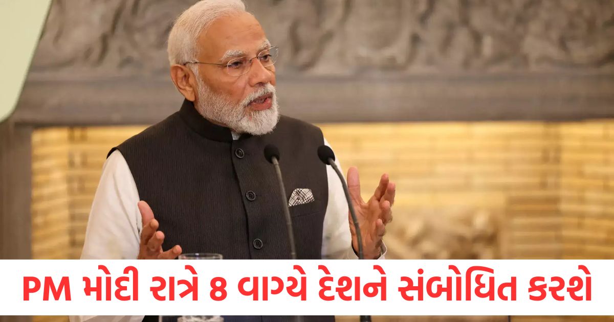 ભારતીય સેના દ્વારા પાકિસ્તાનમાં આતંકવાદી ઠેકાણાઓનો નાશ કરવા માટે ઓપરેશન સિંદૂર શરૂ કરવામાં આવ્યું હતું. આ કાર્યવાહીમાં, 9 આતંકવાદી ઠેકાણાઓ પર હવાઈ હુમલા કરવામાં આવ્યા હતા, જેમાં 100 થી વધુ આતંકવાદીઓ માર્યા ગયા હતા. ઓપરેશન સિંદૂર પછી વડા પ્રધાન નરેન્દ્ર મોદીનું આ પહેલું સંબોધન હશે. પીએમ મોદી રાત્રે 8 વાગ્યે રાષ્ટ્રને સંબોધિત કરશે અને દેશવાસીઓને એક મોટો સંદેશ આપશે.