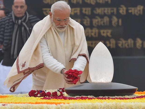 આ દરમિયાન વડાપ્રધાને અટલ બિહારી બાજપેયીની ૧૦૧મી જન્મજયંતી પર રાષ્ટ્ર પ્રેરણા સ્થળનું લોકાર્પણ કર્યું હતું. આ પ્રસંગે પીએમ મોદીએ શ્યામા પ્રસાદ મુખર્જી, પંડિત દીનદયાલ ઉપાધ્યાય અને પૂર્વ વડાપ્રધાન અટલ બિહારી વાજપેયીની ૬૫ ફૂટ ઊંચી કાંસાની પ્રતિમાનું અનાવરણ કર્યું. વડાપ્રધાન મોદીએ સંબોધનમાં કહ્યું કે, અમારી સરકારે ૩૭૦ની દીવાલ તોડી પાડી.